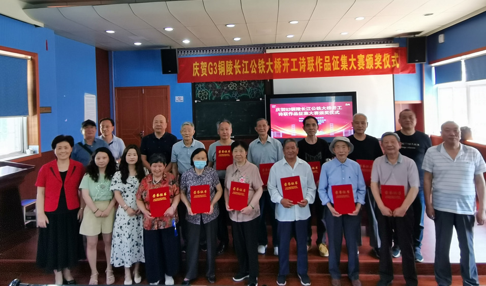 6月10日上午,慶祝G3銅陵長江大橋開工詩聯作品征集大賽頒獎儀式在市建安小學會議室舉辦,評委會在全市詩聯愛好者投稿近百件作品中優中選優,最終評選出一、二、三等獎和優秀獎。