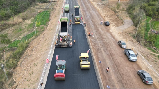 3月7日上午,在G330一期錢鋪段路面上,數臺攤鋪機和壓路機正在進行瀝青攤鋪和路面平整工作,經過工人們數個小時的連續奮戰,順利完成試驗段瀝青下面層鋪筑任務,意味著G330銅陵段一級公路改建工程(一期)正式進入瀝青路面施工階段。