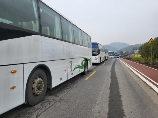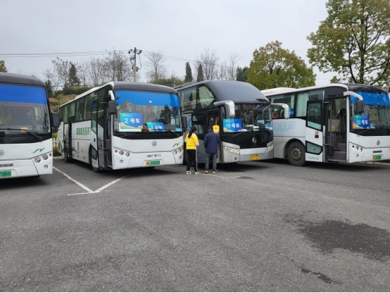 當日,17臺電動大巴車按照事先安排,早上7時前提前來到市體育館等候,集結在此參賽人員在聯絡員的安排下,有序乘車入座,車輛全程穩健行駛,一路安全高效地將參賽人員送達至九廊錢莊自然村參加活動。11時返程回到出發地,行程約100公里。