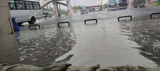 7月25日中午,我市發生大風降雨等降對流天氣。由于雨勢迅猛,汽車站站場內發生大面積積水,并漫溢到候車廳外檢票通道,水勢沖擊著防汛沙包直逼候車大廳。面對這一情況,工作人員迅速啟動防汛應急預案,立即對沙包進行加固處理,關閉停用一切非必要生產用電,安排人員對候車旅客統一集中管理,隨時組織疏散。
