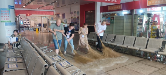 隨著雨勢減弱、積水逐漸退去,工作人員隨即拿出早已準備好的拖把、大掃把,將滲進候車廳的積水清理干凈,并噴灑消毒藥水,做好通風消殺,各項生產秩序很快恢復正常。下一步,交投汽運公司汽車站將繼續做好強降雨天氣防范應對工作,及時掌握汛情動態,加強分析研判,做好應急準備,加強駕駛員安全教育提醒,達不到安全運營條件時堅決停運,全力保障汛期交通運輸行業安全平穩運行。