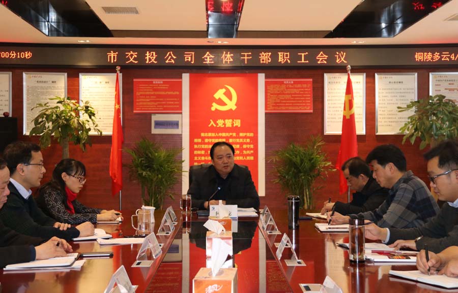 2018年2月22日下午,市交投公司召開全體干部職工會議,傳達學習貫徹22日上午市委、市政府召開的全市招商引資招才引智工作動員大會精神。會議指出,市委、市政府以深化供給側結構性改革和產業轉型升級為主線,堅持將招商引資、招才引智作為項目建設、經濟發展的主抓手,年初第一天上班即召開“雙招雙引”動員大會,體現了對項目投資和建設工作的高度重視,公司上下要結合2018年公司轉型發展和各自崗位實際,認真貫徹全市動員大會精神,扎實做好市委、市政府布置給公司的招商引資招才引智工作任務。