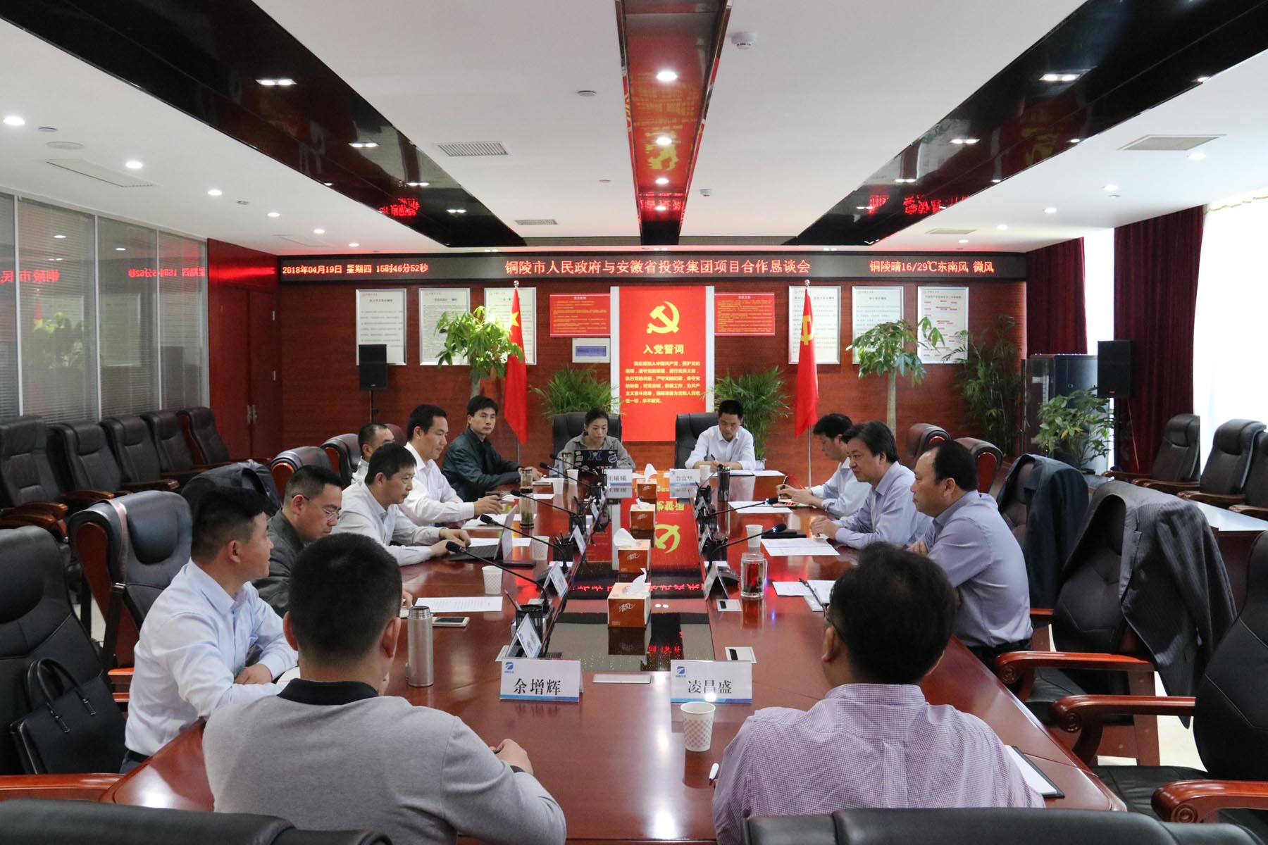 4月19日下午,銅陵市人民政府與安徽省投資集團項目合作懇談會在公司舉行,省投資集團黨委委員、副總經理、省鐵路投資有限責任公司黨委書記、董事長于華偉、市政府副市長黃學龍、省鐵路投資有限責任公司黨委副書記、總經理葛焱坤、公司黨工委書記、董事長何成龍、省鐵路投資有限責任公司總工程師汪學軍、安徽蕪銅長江高速公路有限公司董事長儲林繼、安徽蕪銅長江高速公路有限公司總經理曾勇、公司黨工委委員、副總經理湯世才出席會議,省鐵路投資有限責任公司經營管理部、財務管理部及公司綜合部、金融部負責人參加會議。