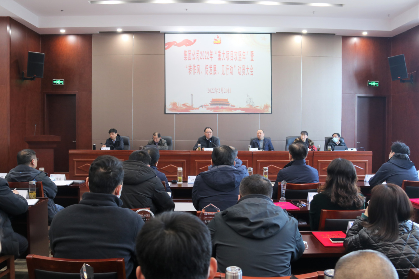 2月20日上午,集團公司2022年“重大項目攻堅年”暨“轉作風、促發展、見行動”動員大會召開,集團公司黨委班子成員、中層以上管理人員、子公司主要負責人及受表彰人員參加會議。