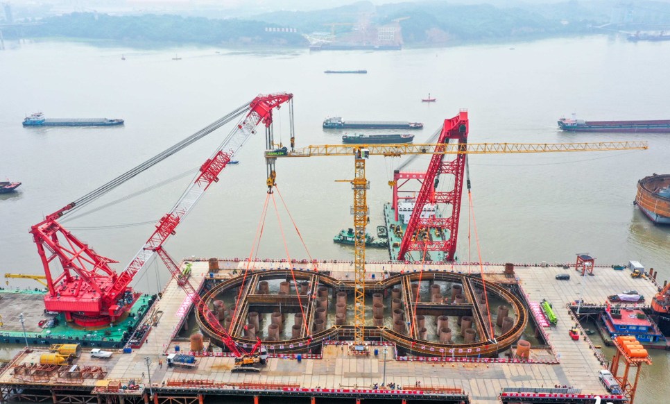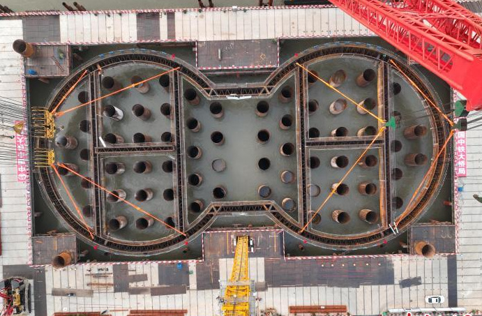 5月30日下午,隨著世界最大的圓啞鈴型鋼圍堰第一節(jié)、第二節(jié)準(zhǔn)確吊裝就位,標(biāo)志著由市交投集團(tuán)投資建設(shè)、中國(guó)中鐵大橋局承建的世界首座雙層斜拉-懸索協(xié)作體系大橋——G3銅陵長(zhǎng)江公鐵大橋3號(hào)主塔墩正式轉(zhuǎn)入大體積承臺(tái)施工階段,大橋建設(shè)取得重大進(jìn)展。