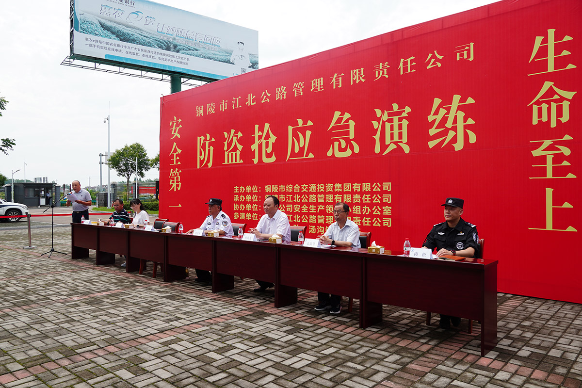 為深入貫徹落實習近平總書記關于安全生產重要指示,推動落實安全生產十五條措施,創新開展集團公司2022年“安全生產月”活動,6月29日上午,集團公司安全生產領導小組在江北公路管理有限責任公司組織開展2022年防盜搶演練活動,市公安局黨委委員、常務副局長駱后來、集團公司黨委書記、董事長何成龍及部分黨委班子成員出席活動,各子公司、各項目主要負責任人參加本次活動。