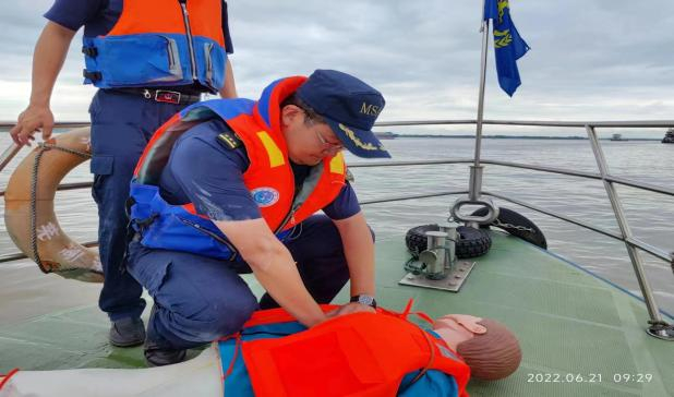 (六)6月21日上午,在G3銅陵長江公鐵大橋3#墩上游施工水域開展水上聯合應急演練。銅陵長江公鐵大橋投資有限公司、銅陵海事處、G3橋項目辦、項目部、監理等單位相關人員參與演練。