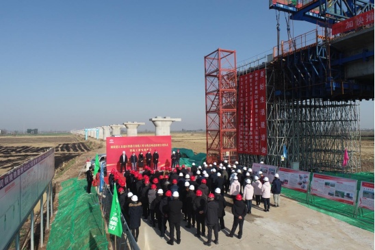 12月15日上午,銅陵港江北港區(qū)鐵路專用線工程全線首座連續(xù)梁合龍儀式暨施工現(xiàn)場觀摩會在施工現(xiàn)場舉行。集團(tuán)公司黨委書記、董事長何成龍,黨委副書記、總經(jīng)理周文勝,黨委委員、副總經(jīng)理黃勇,中鐵建長江(銅陵)港鐵建設(shè)運(yùn)營有限公司董事長徐重陽,監(jiān)理、設(shè)計等單位負(fù)責(zé)人及相關(guān)人員出席了本次活動。銅陵江北港鐵路專用線公司董事長、總經(jīng)理張葉來主持合龍儀式,市鐵路辦副主任王濱受邀參加活動并講話。