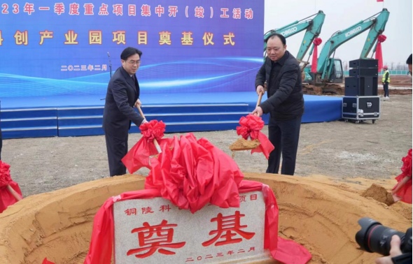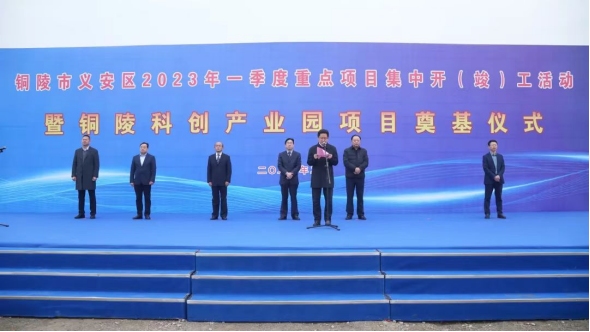 2月18日上午,銅陵科創(chuàng)產(chǎn)業(yè)園暨義安區(qū)2023年一季度重點(diǎn)項(xiàng)目集中開(kāi)(竣)工活動(dòng)在銅陵科創(chuàng)產(chǎn)業(yè)園起步區(qū)(一期)現(xiàn)場(chǎng)隆重舉行,市人大常委會(huì)副主任、義安區(qū)委書(shū)記姚貴平,義安區(qū)委、區(qū)人大、區(qū)政府等負(fù)責(zé)同志出席活動(dòng)。集團(tuán)公司黨委書(shū)記、董事長(zhǎng)何成龍應(yīng)邀出席活動(dòng)和項(xiàng)目奠基儀式,并在活動(dòng)現(xiàn)場(chǎng)致辭。集團(tuán)公司董秘、銅陵科創(chuàng)產(chǎn)業(yè)園有限公司董事長(zhǎng)、總經(jīng)理凌昌盛,銅陵科創(chuàng)產(chǎn)業(yè)園有限公司、監(jiān)理單位、施工單位等相關(guān)負(fù)責(zé)同志參加活動(dòng)。