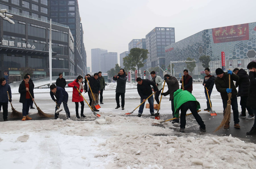 2018年1月28日, 連續(xù)3天的暴雪之后,銅陵城市道路上已覆蓋了厚厚的積雪,多數(shù)路段的積雪已經(jīng)凝結(jié)成冰。為了保障市民的出行安全,貢獻(xiàn)交投公司的一份力量。當(dāng)日下午,市交投公司黨工委領(lǐng)導(dǎo)帶領(lǐng)全體員工進(jìn)行了義務(wù)除雪活動(dòng)。