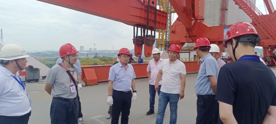 龍道寧一行先后前往G3公鐵橋項目起點、北岸智慧梁場、4號主墩、南北錨碇施工現場及項目終點,實地查看了施工進度情況,詳細了解了項目概況及施工推進過程中的重難點,并現場給與指導意見。