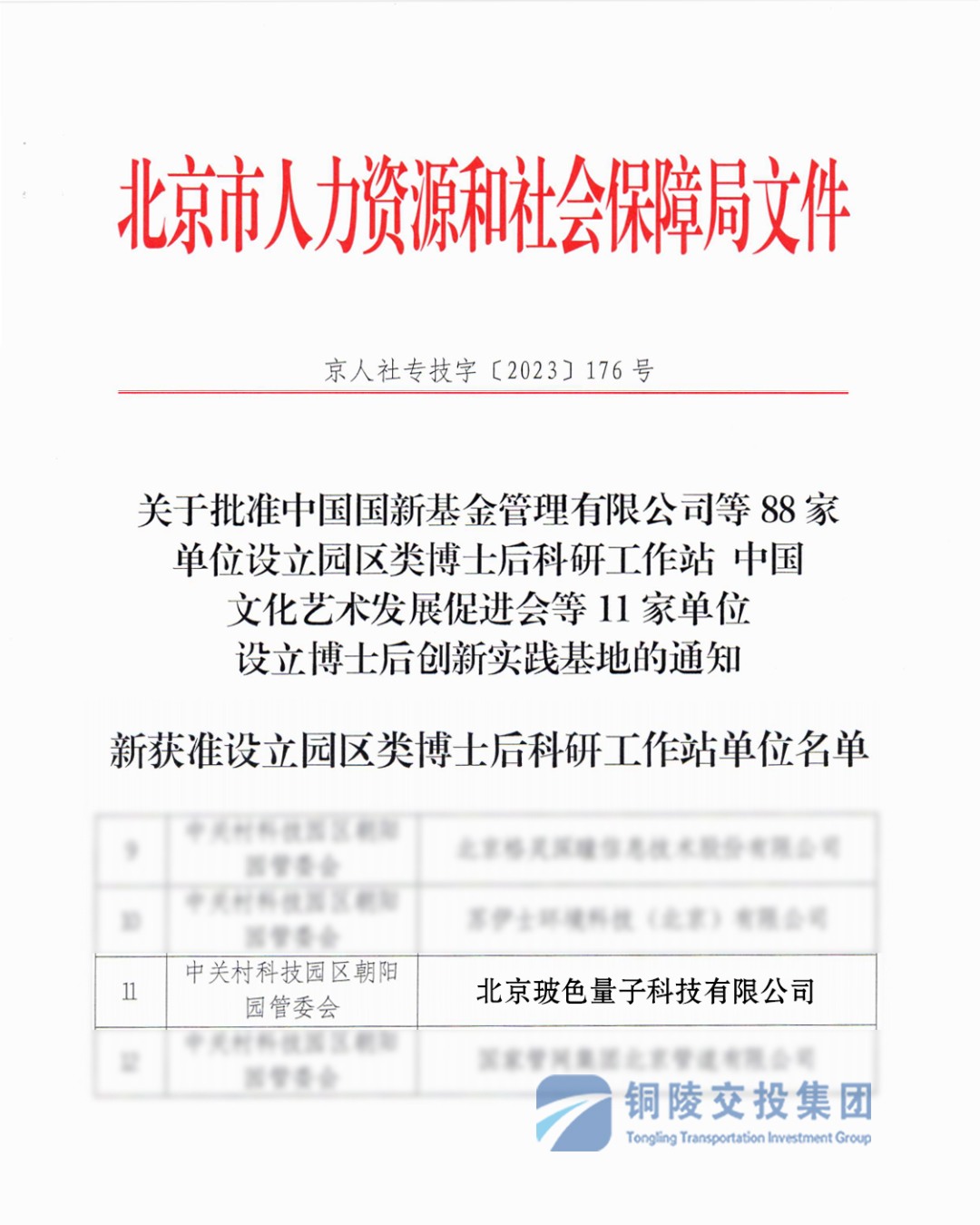 2023年11月21日,北京市人力資源和社會保障局在亦莊成功舉辦了“凝聚中國式現代化進程中的博士后力量推進會暨第二屆全國博士后創新創業大賽北京賽區總結”。為加強博士后工作對提高企業創新能力的支持力度,推動產學研深度融合,經專家評議、市人力資源社會保障局核準,最終共88家單位批準設立園區類博士后科研工作站,北京玻色量子科技有限公司(簡稱“玻色量子”)是此次獲批的博士后科研工作站的唯一一家量子計算公司。玻色量子創始人&CEO文凱博士作為公司代表上臺參加新設站單位授牌儀式。