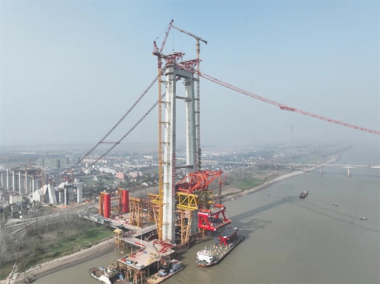 11月23日,G3銅陵長江公鐵大橋北主塔成功架設第一節(jié)鋼梁,拉開了大橋江北側鋼梁架設的序幕。
