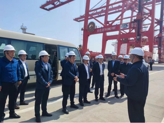 在太倉港港務集團,先后參觀了裝箱碼頭和鑫海碼頭,詳細了解港口貨物種類、貨源流向、港區后方產業等情況。