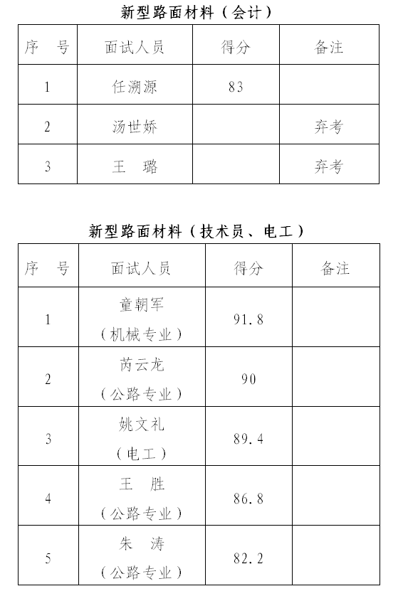根據(jù)《銅陵市綜合交通投資集團有限公司公開招聘人員面試公告》,我公司已于1月13日開展銅陵市綜交新型路面材料有限責任公司、銅陵交投再生資源綜合利用有限公司招聘人員面試工作,現(xiàn)將擬招錄人員名單公示如下。