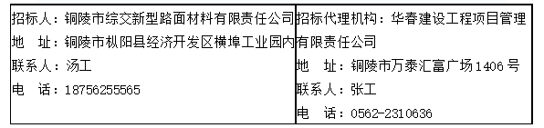 2.招標人:銅陵市綜交新型路面材料有限責任公司