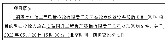 項(xiàng)目名稱(chēng):銅陵市華信工程質(zhì)量檢驗(yàn)有限責(zé)任公司實(shí)驗(yàn)室儀器設(shè)備采購(gòu)項(xiàng)目