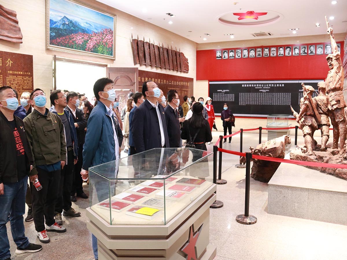 大家依次瞻仰了紅軍紀念堂、洪學智將軍紀念碑、革命烈士墓園,并參觀了革命博物館。同志們認真觀看每一張歷史圖片,每一段文字資料,每一件珍貴物品,仿佛置身于那個烽火燎原的革命年代,看到了當年紅軍指戰員浴血奮戰、追求真理的畫面,親身體驗到革命先烈們為尋求真理而不惜拋頭顱、灑熱血的英雄壯舉,心潮澎湃,深受鼓舞。