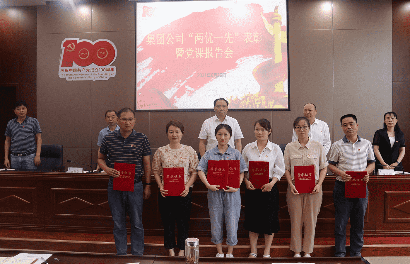 授予魯富華、張葉來(lái)等4名同志“優(yōu)秀共產(chǎn)黨員”稱號(hào);授予孔云、郝莎莎同志“優(yōu)秀黨務(wù)工作者”稱號(hào);授予集團(tuán)公司第一黨支部“先進(jìn)基層黨組織”稱號(hào),并現(xiàn)場(chǎng)向受表彰的“兩優(yōu)一先”代表頒獎(jiǎng)。