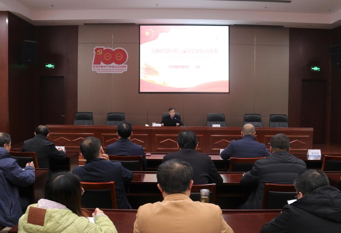 楊陟教授以“在新時代新征程上贏得更加偉大的勝利”為題,從總體把握黨的十九屆六中全會的主要內容、全面認識中國共產黨奮斗的偉大成就、充分領會中國共產黨百年奮斗的歷程、深刻理解中國共產黨百年奮斗的重大意義四個方面進行了深入解讀。既有客觀理性的分析,又有具體生動的說明,深入淺出,具有很強的針對性、指導性。
