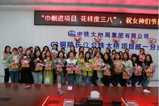 為熱烈慶祝“三八婦女節”,進一步豐富廣大女職工文化生活,切實增強女職工的幸福感和獲得感,3月8日上午,集團公司組織40余名女職工赴G3公鐵橋北岸項目點開展“巾幗進項目 花樣度三八”主題活動。