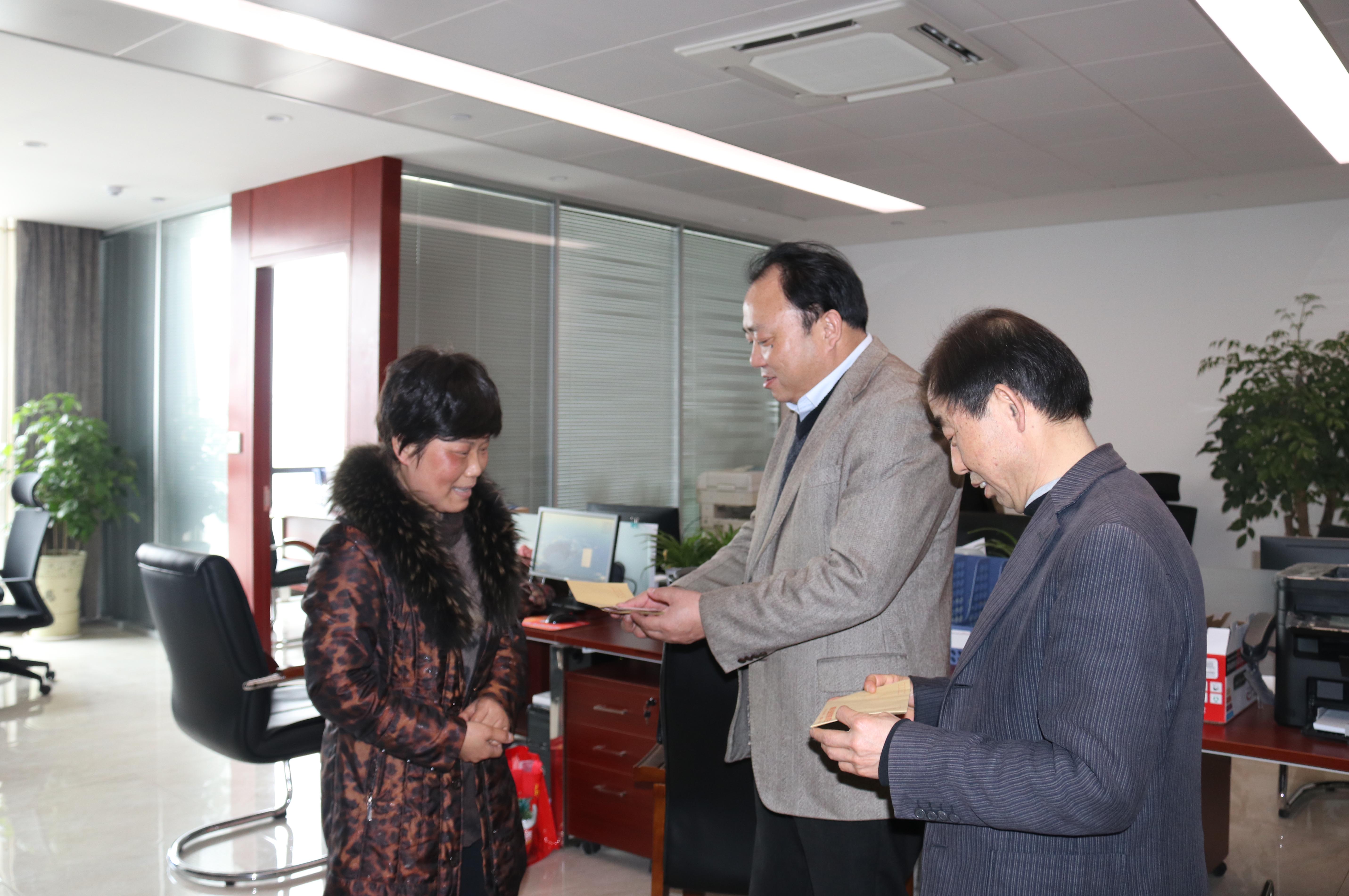 2月14日上午,公司黨工委書記、董事長何成龍,黨工委委員、紀委書記章新華看望慰問公司困難職工,將幫扶慰問資金送到困難職工手上,叮囑該職工安心治病,并致以春節的良好祝愿。