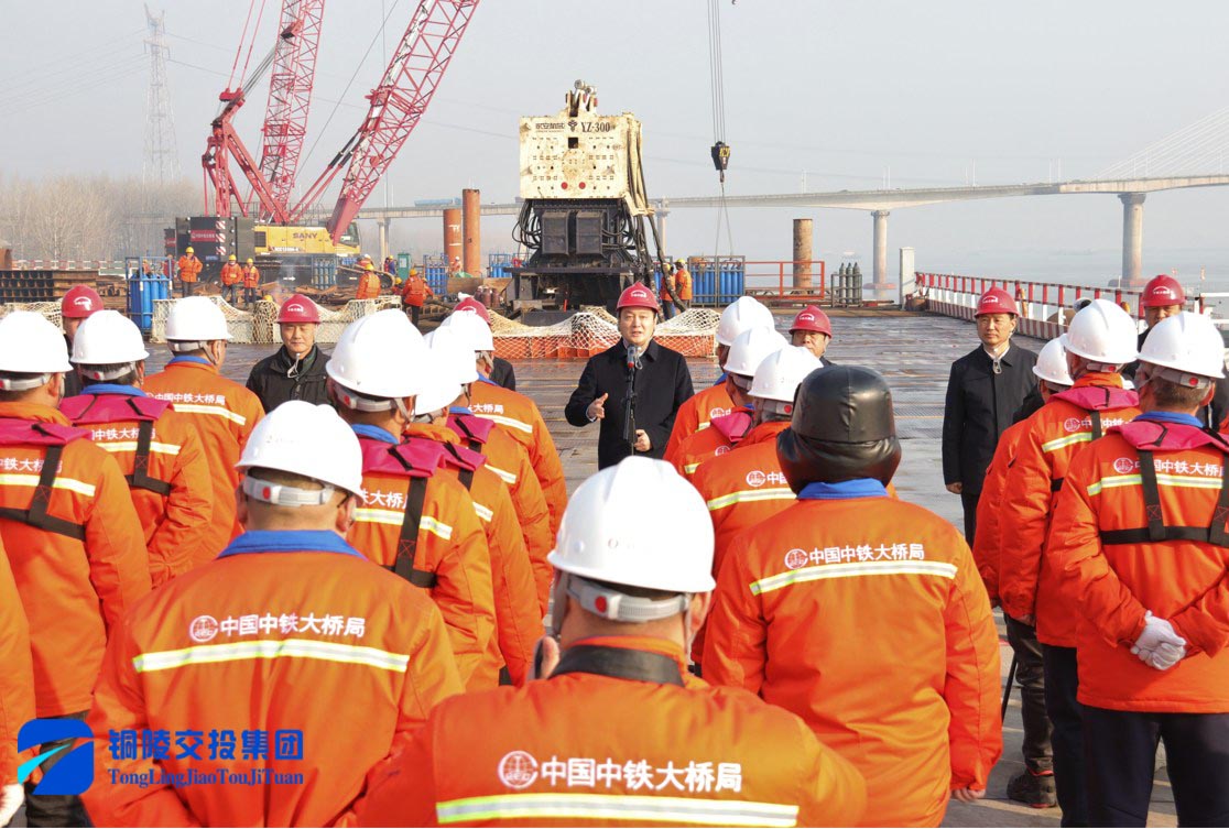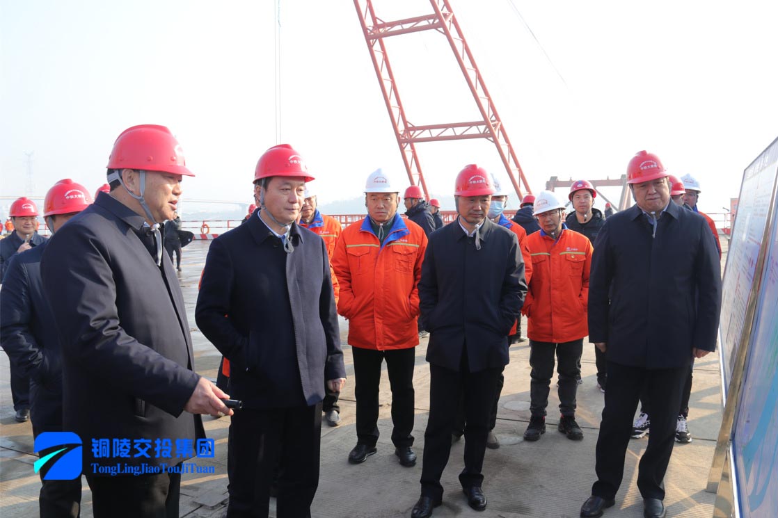 12月29日上午,市委副書記、市長孔濤調研G3銅陵長江公鐵大橋項目建設工作并看望慰問一線職工。市領導張夢生、金春龍、何田、何剛明、黃學龍,市政府秘書長古勁松等參加,集團公司黨委書記、董事長何成龍參加調研。