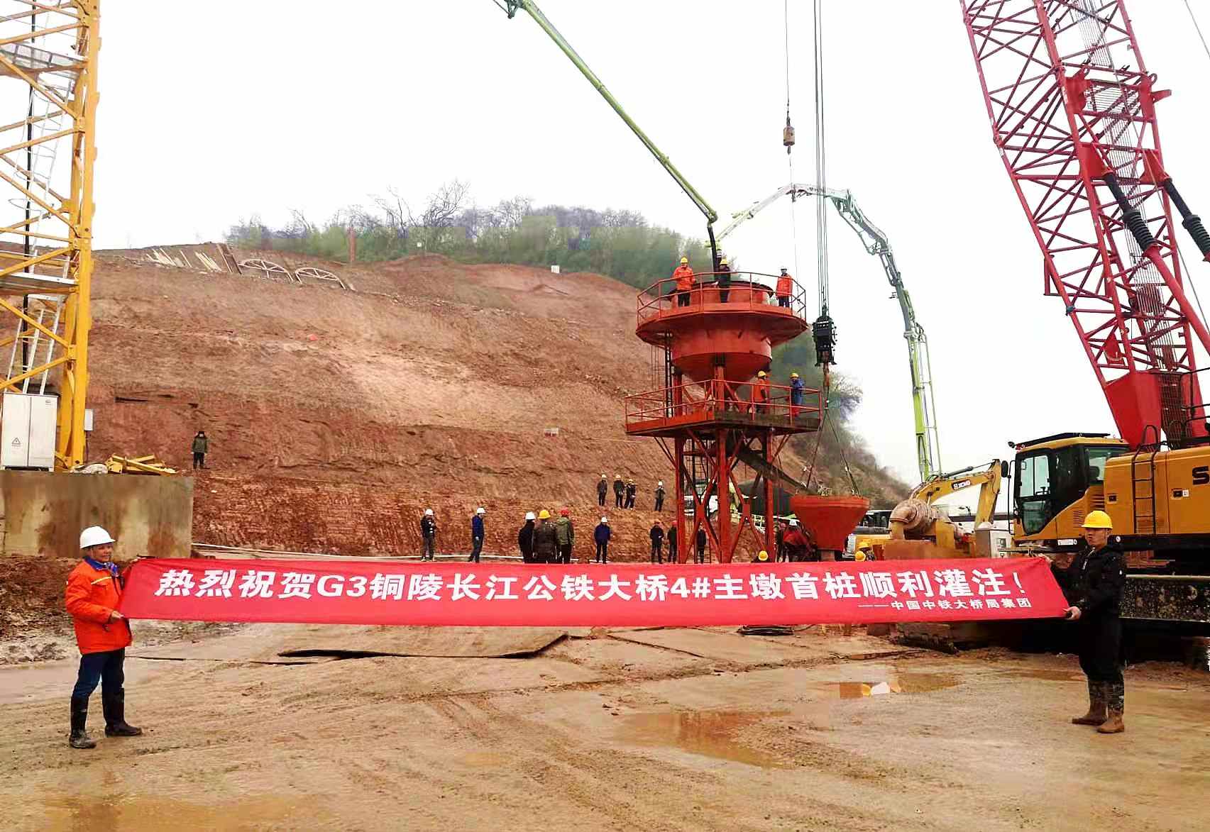 2月14日晚上8時(shí)40分,經(jīng)過(guò)10小時(shí)的連續(xù)奮戰(zhàn),由中鐵大橋局承建的G3銅陵長(zhǎng)江公鐵大橋4號(hào)主墩首根鉆孔樁成功灌注,標(biāo)志著大橋南主塔墩樁基工程進(jìn)入了全面施工階段。