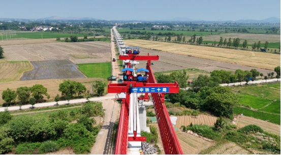 5月23日上午,在銅陵港江北港區(qū)鐵路專用線項目廬江段黃泥河特大橋施工現場,隨著長32米、重140噸的預制T梁平穩(wěn)精準架設在黃泥河特大橋102號橋臺至101號墩上,標志著江北港鐵路專用線項目廬江段首片T梁順利架設,至此,銅陵段、廬江段全部進入橋梁架設施工。