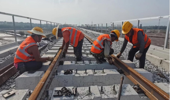 銅陵江北港鐵路專用線項(xiàng)目北起廬銅鐵路廬江南站,南至銅陵市江北港區(qū),Ⅲ級(jí)單線鐵路,設(shè)計(jì)時(shí)速為 80km/h,新建正線鋪軌全長52.047km,全線道砟約13萬立方米,采用人工鋪軌方式,鋪設(shè)25米定尺長有螺栓孔熱軋鋼軌,預(yù)計(jì)鋪軌工作將于2024年12月底基本完成。